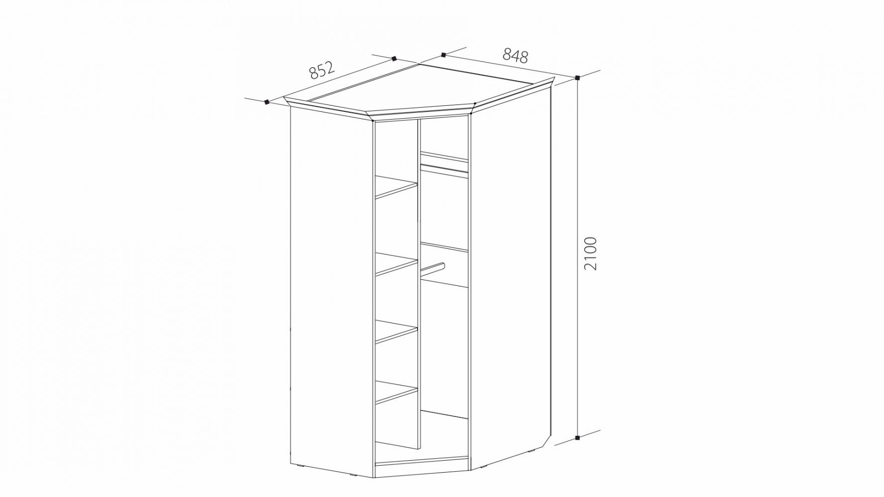 ДхВхШ: 848х2100х852 мм (без учёта карниза).